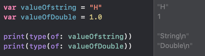 swift는 변수 선언과 동시에 초기화해주면 자동으로 타입추론을 해주기 때문에 따로 자료형을 선언해주지 않아도 된다.