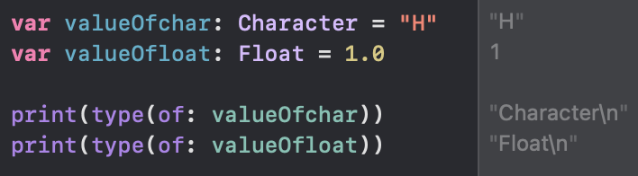 Character로 선언하고 싶은 변수가 String으로 타입추론 되거나(swift에서는 문자열과 문자 둘다 " " 를 사용)