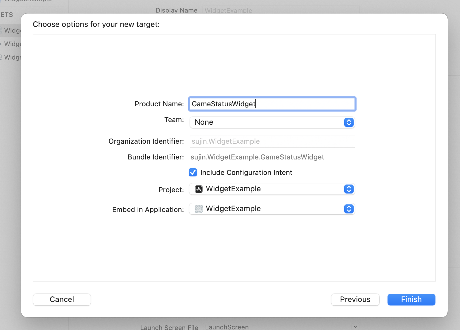 2번에서 widget 이름을 넣는 창에서 Budle identifier 및에 include Configuration Intent라는 체크박스가 보입니다.