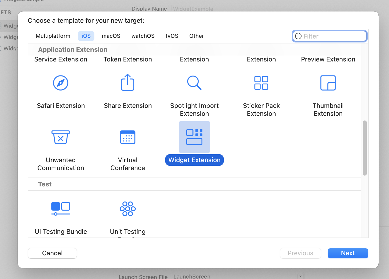 위젯을 실행시키기 위해서는 widget extension을 추가해야 합니다.