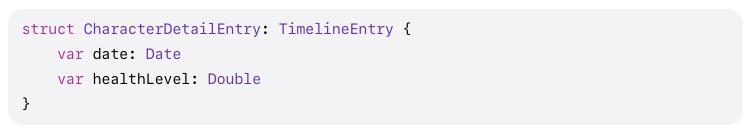 TimelineEntry를 채택하는 CharacterDetailEntry가 있습니다. 여기서 date는 위젯이 업데이트 될 시간정보,