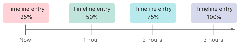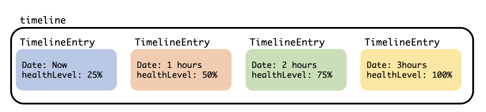 한시간에 25%씩 회복되기 때문에 총 4개의 Timeline entry를 가지는 timeline 배열이 생성될 것입니다.