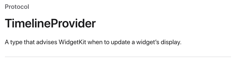 공식문서를 보면 TimelineProvider는 widget이 언제 업데이트 될지 알려주는 프로토콜임을 알 수 있습니다