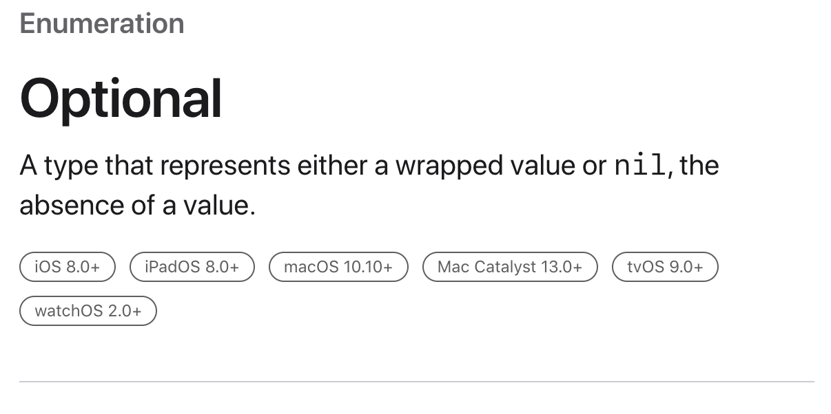 wrapped 값 또는 없는 nil을 나타내는 있는 타입입니다.